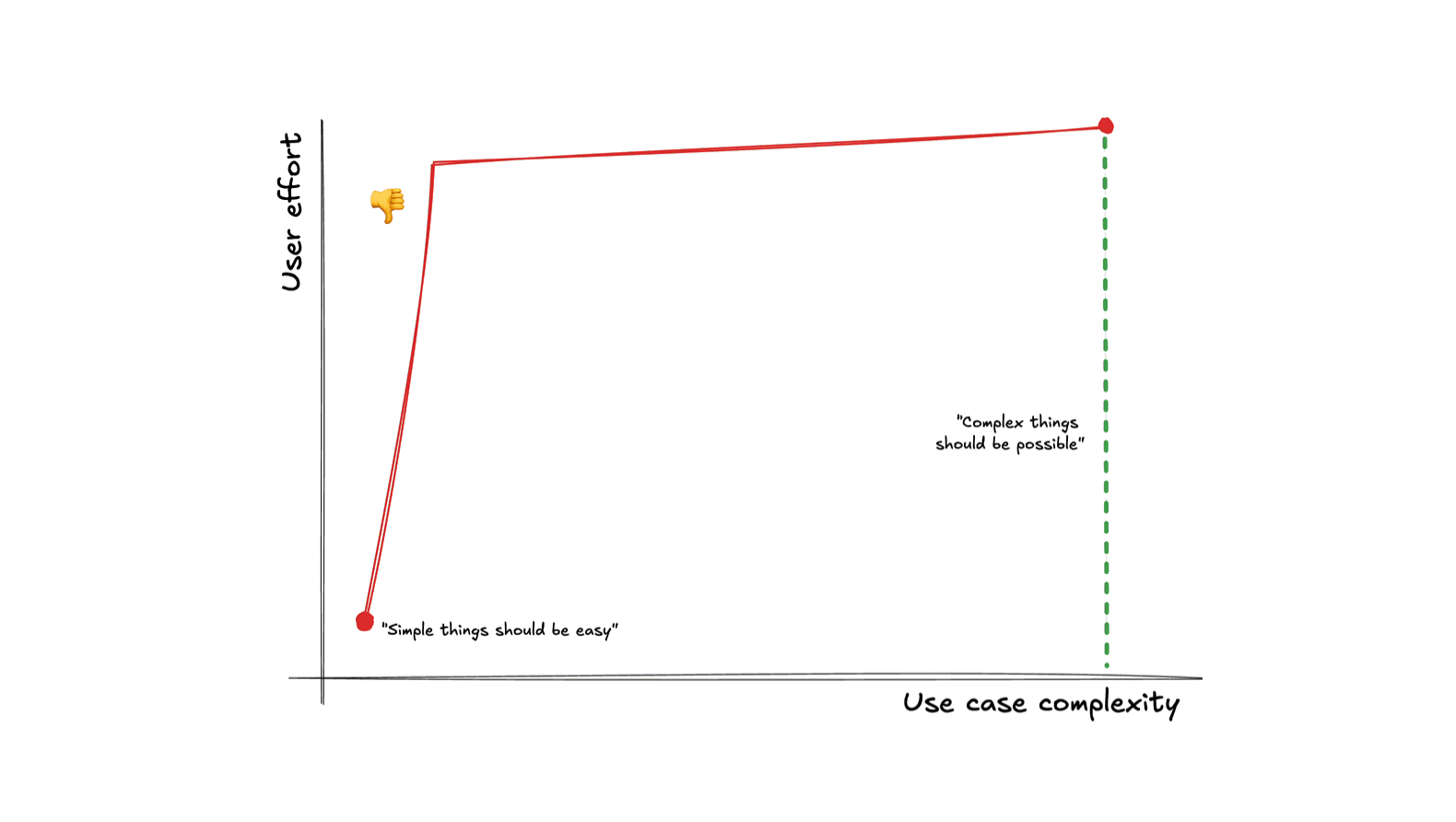But once use case complexity crosses a certain (low) threshold, user effort abruptly shoots up.